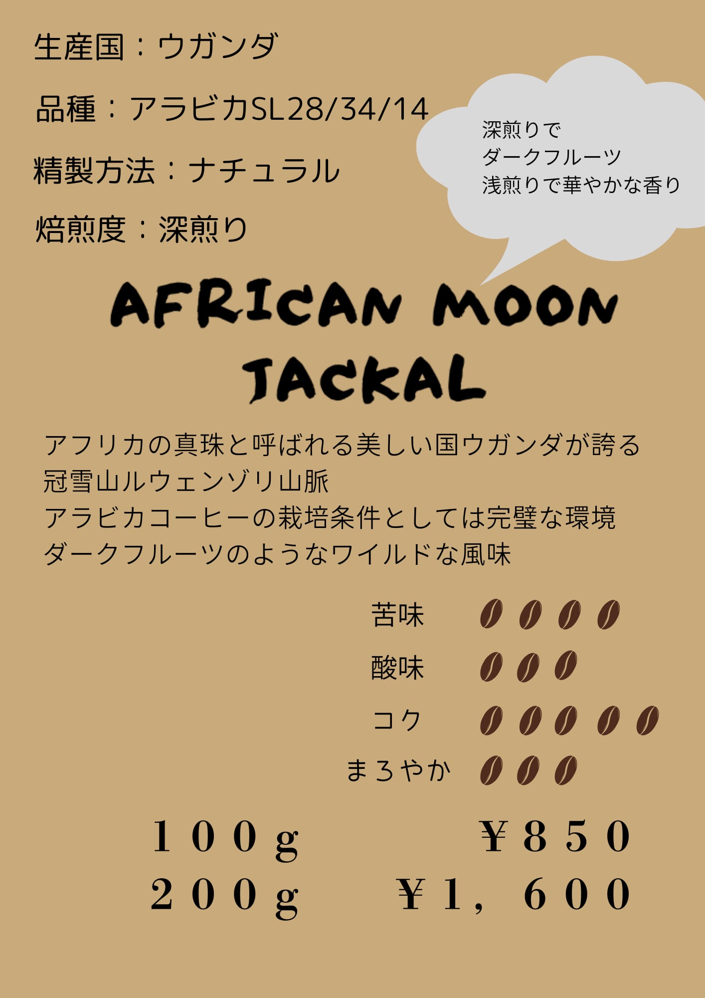 AFRICAN MOON JACKAL 100g /深煎り